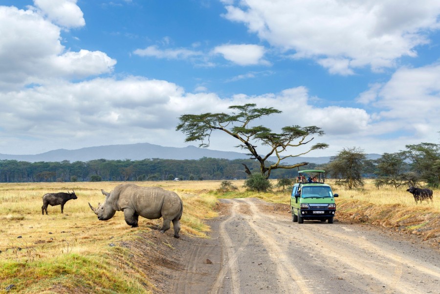 The Maasai Mara is Kenya’s most celebrated game park, it offers the possibility of seeing “the Big Five” and many other species of game. This is where the great wildebeest migration “the world’s greatest wildlife spectacle” occurs mainly in July and August of each year. Lake Nakuru (Pink Lake) is often referred to due to its Great masses of Flamingos not forgetting the famous white Rhino and black rhino found in this park.